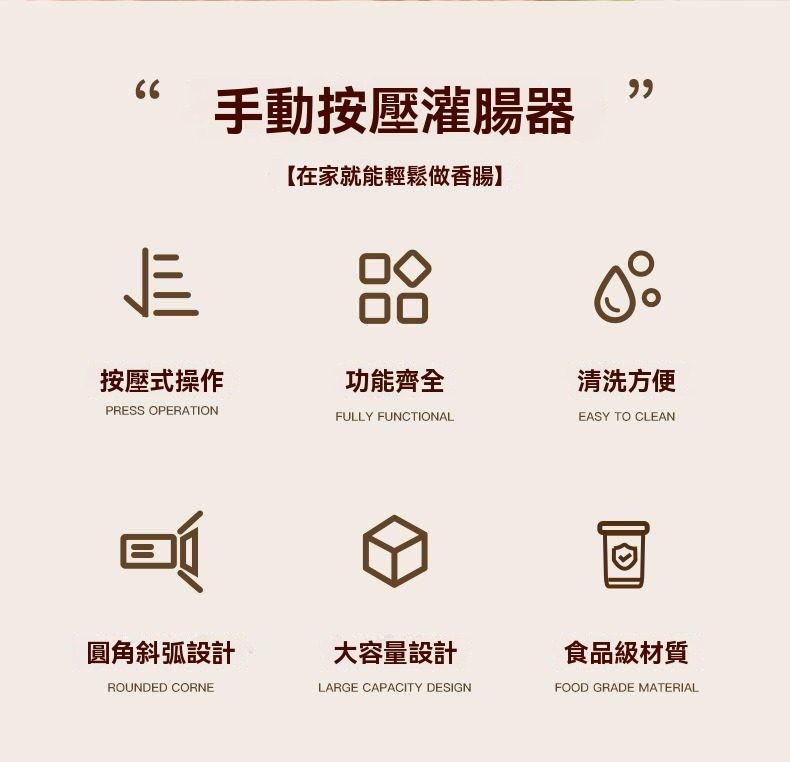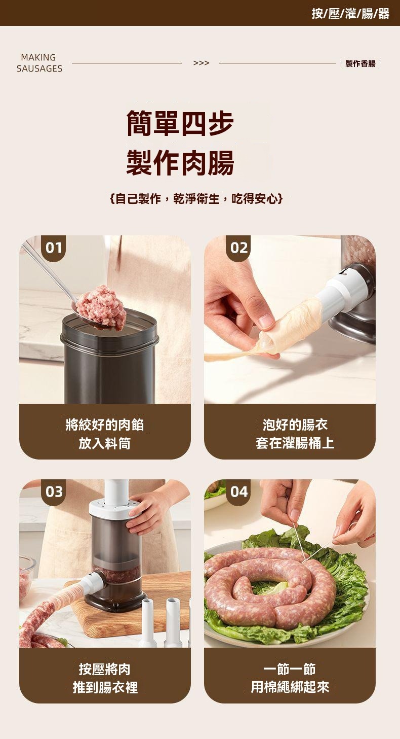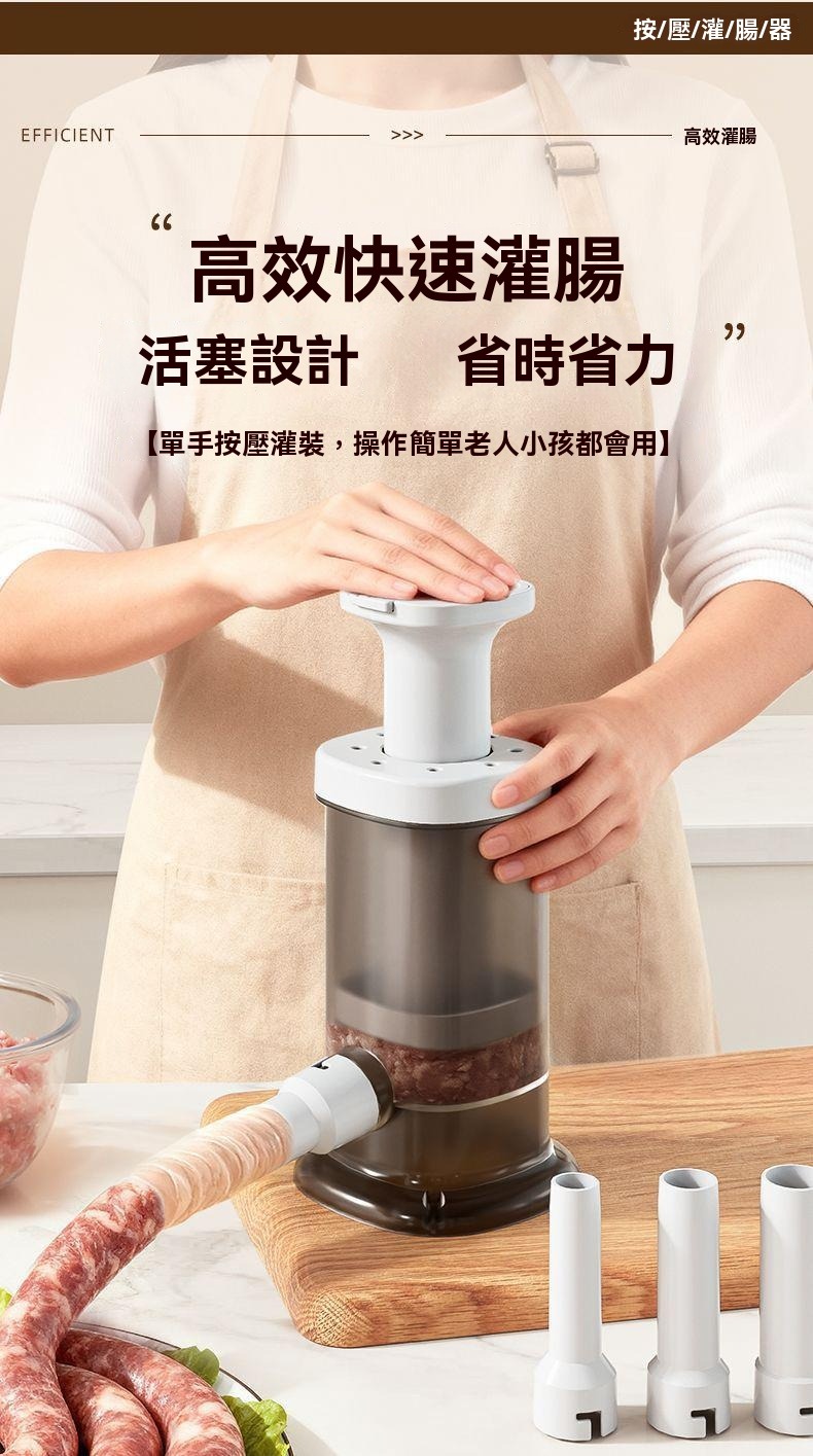 想吃真材實料、無添加的純肉香腸?但一想到手動灌腸的崩潰現場…就瞬間放棄?灌腸神器來了! ✅ 食品級材質 ✅ 配件齊全 ✅ 省力王者,一壓出腸