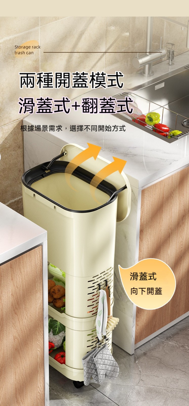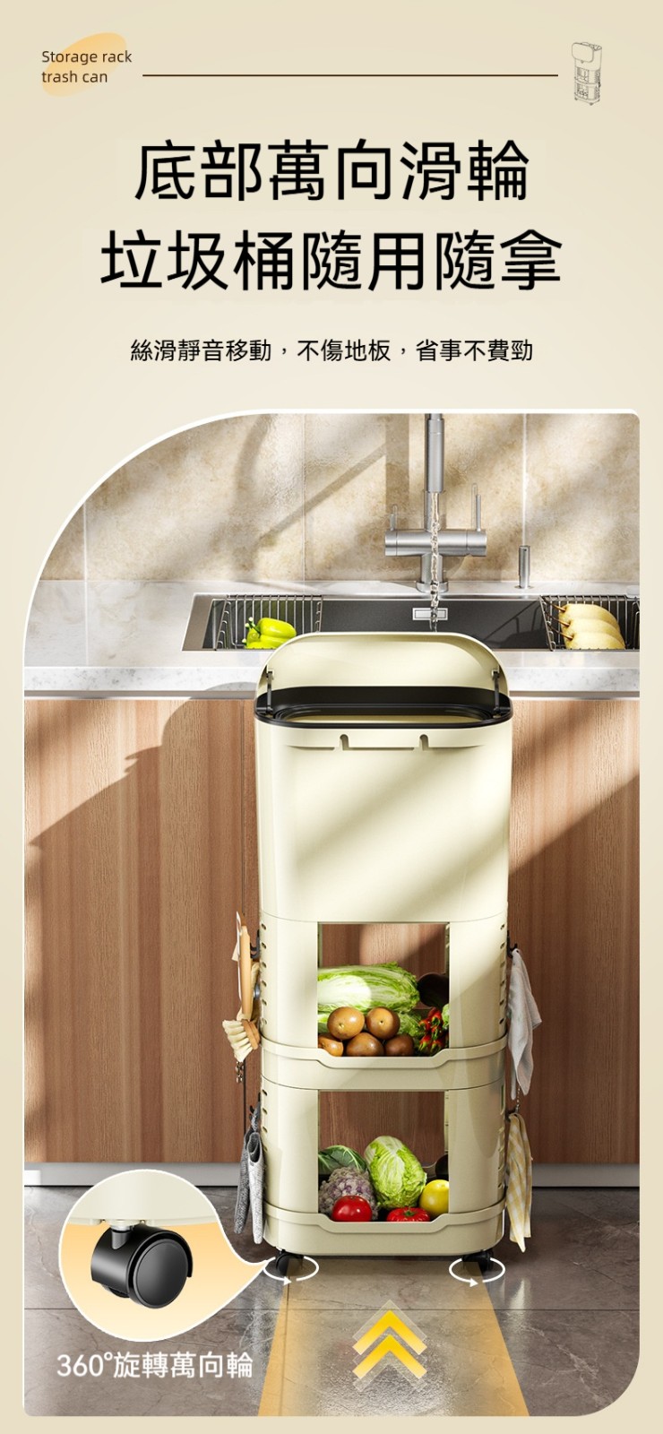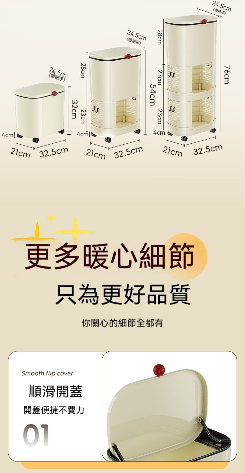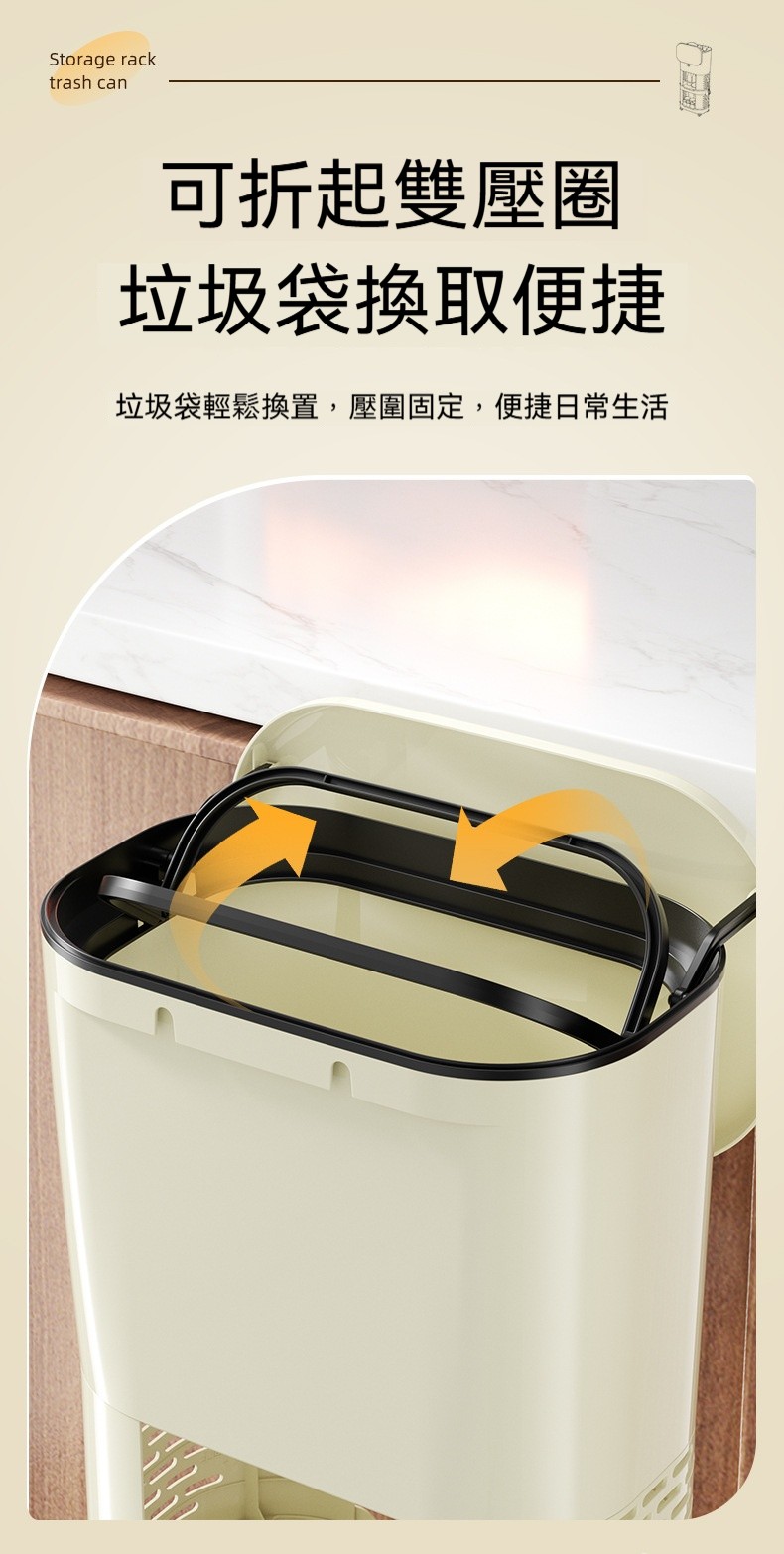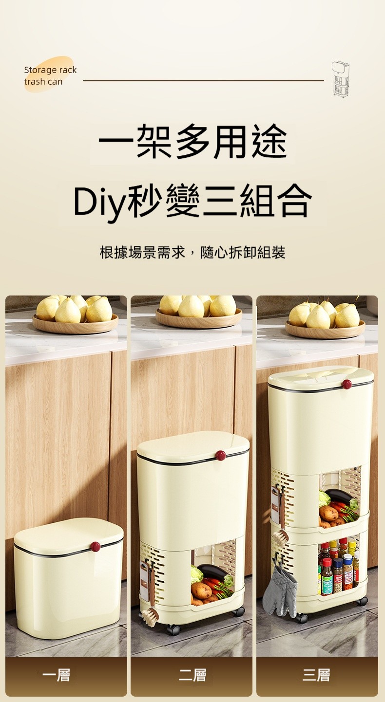 ✅高款設計,站著就能丟垃圾,不用再彎腰;✅大容量帶蓋,密封防異味,讓廚房保持清新;✅底部附滑輪,輕鬆移動,打掃超方便。✅更貼心的是,還有多功能置物架,垃圾袋、保鮮膜、清潔劑通通有地方放。✅讓廚房收納升級,做菜更優雅!