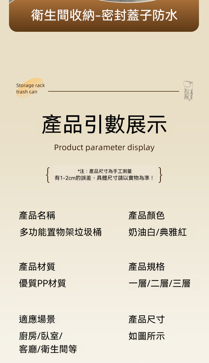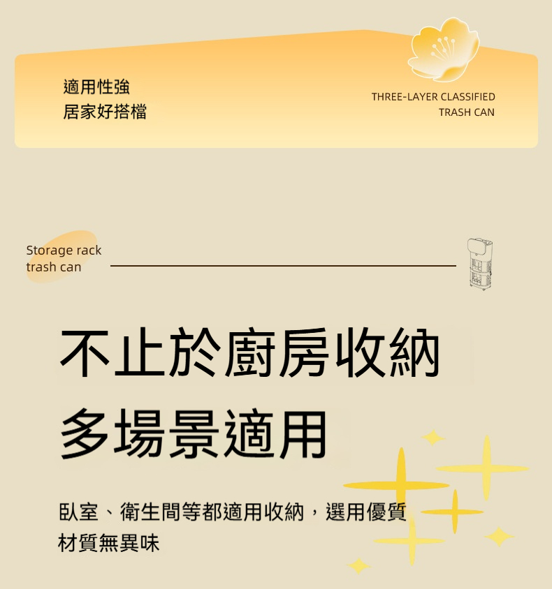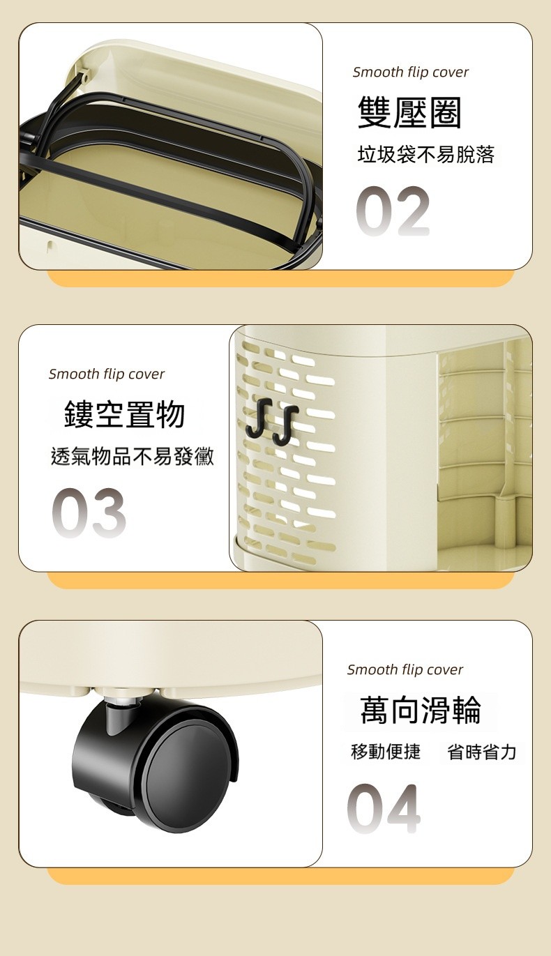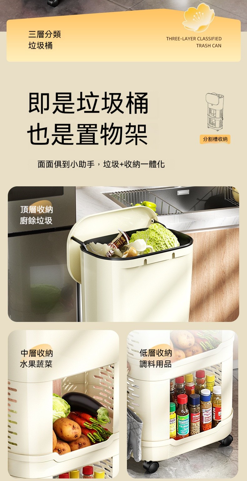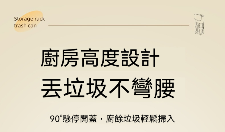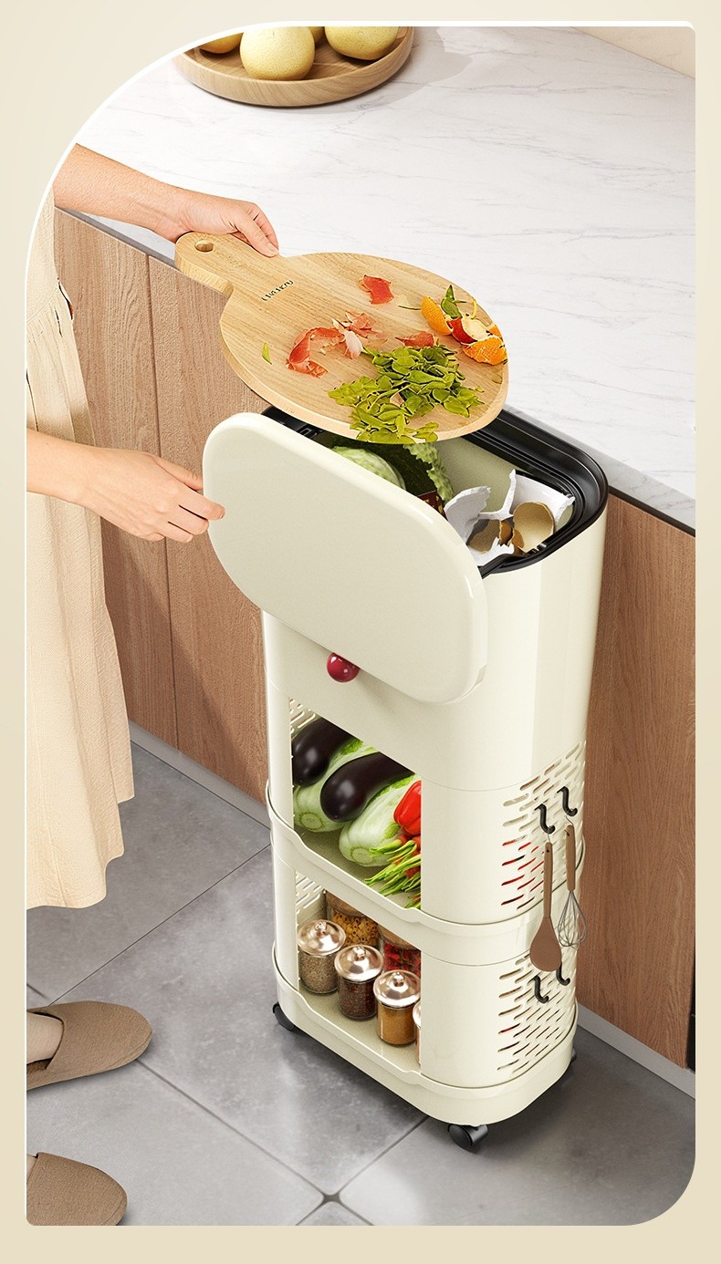 ✅高款設計,站著就能丟垃圾,不用再彎腰;✅大容量帶蓋,密封防異味,讓廚房保持清新;✅底部附滑輪,輕鬆移動,打掃超方便。✅更貼心的是,還有多功能置物架,垃圾袋、保鮮膜、清潔劑通通有地方放。✅讓廚房收納升級,做菜更優雅!