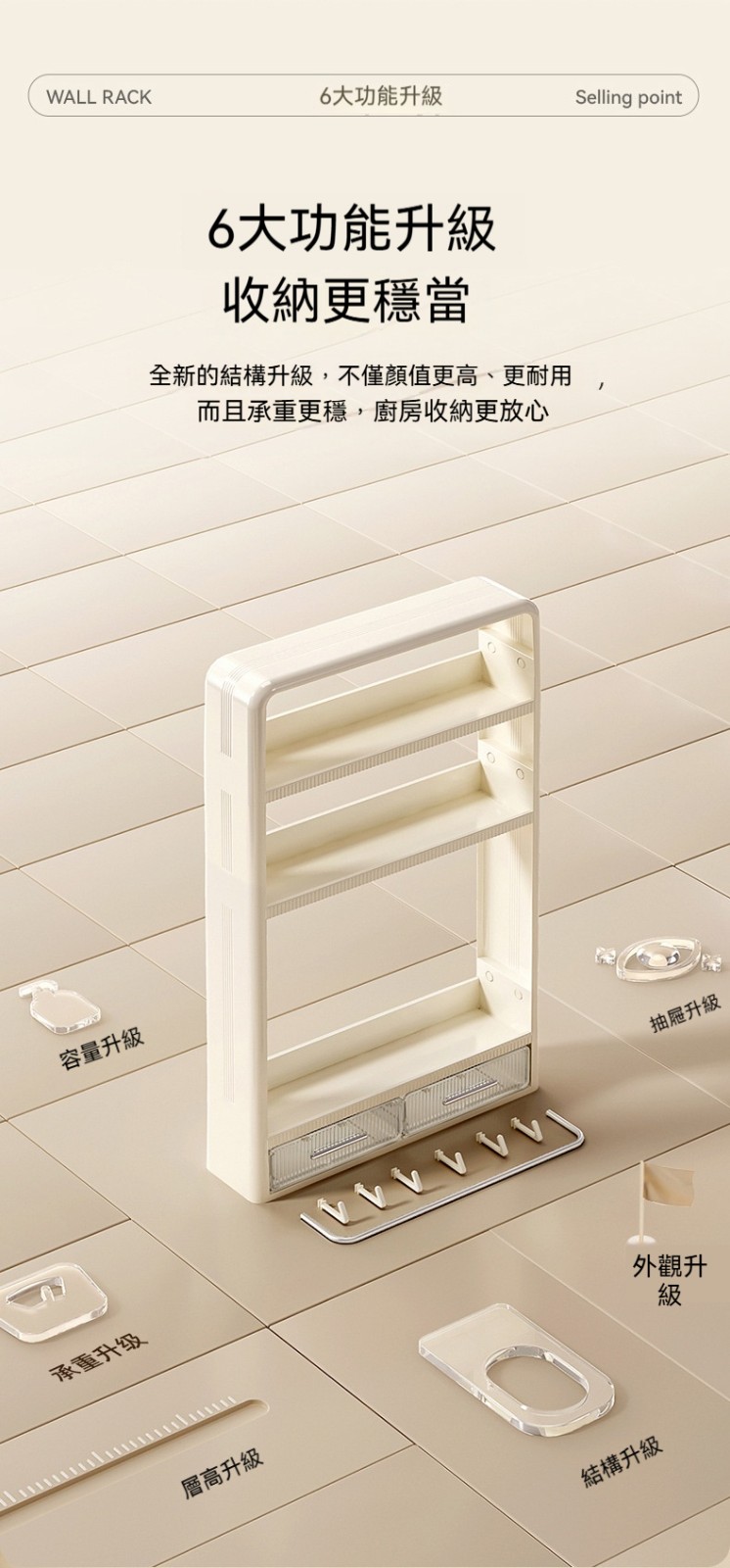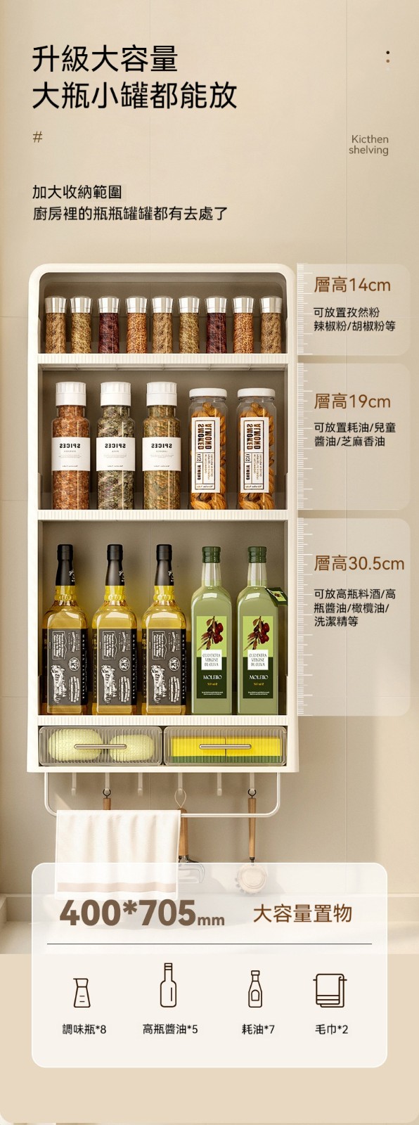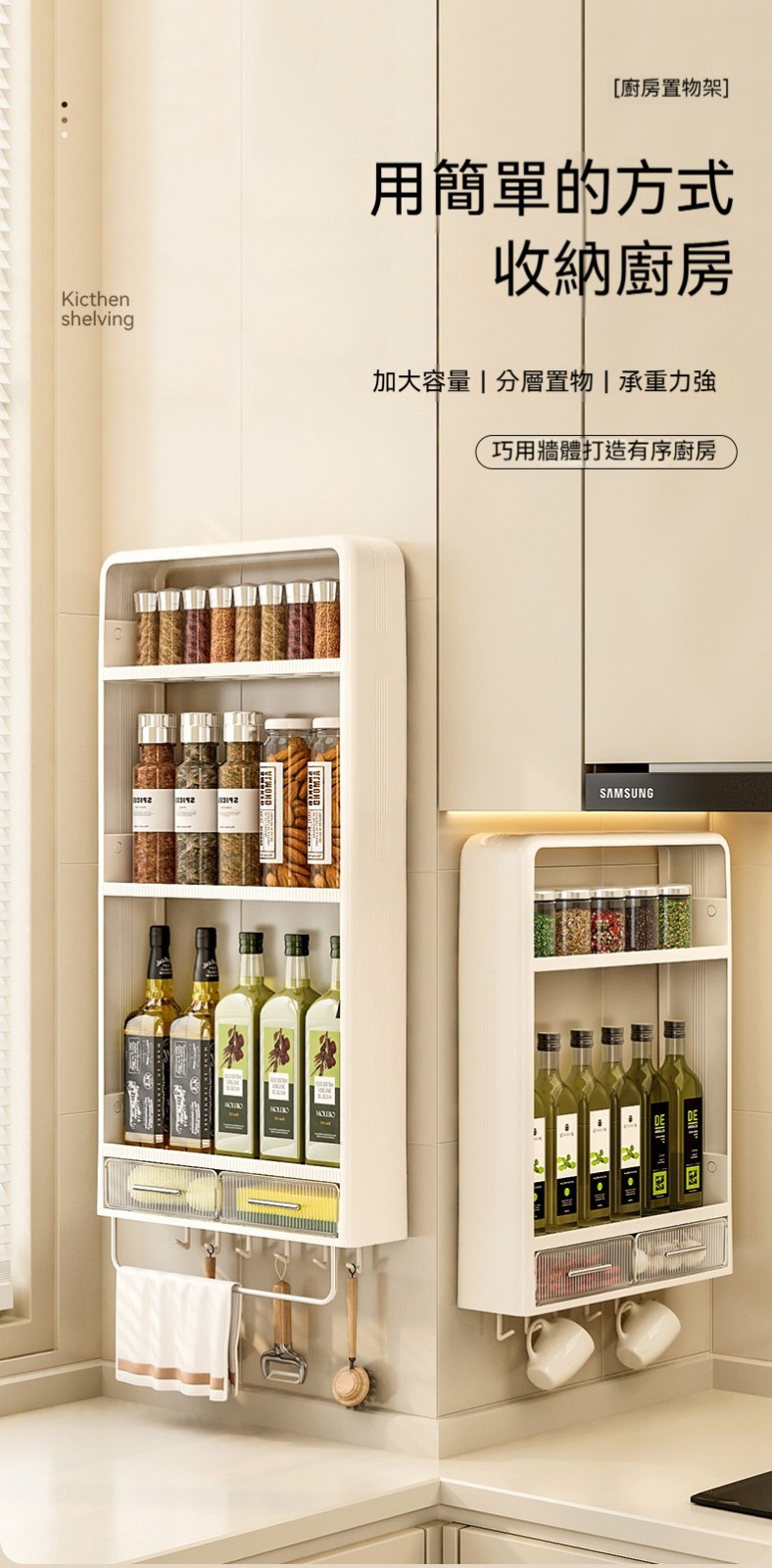 ✨這款「廚房置物架」,專為小廚房、租屋族、討厭鑽牆的你而設計!✨免打孔安裝,不傷牆面,卻能牢牢承重。✨調味料、刀具、鍋蓋、砧板、保鮮膜……廚房雜物通通上牆,檯面瞬間清空,做菜心情都變好了!✨