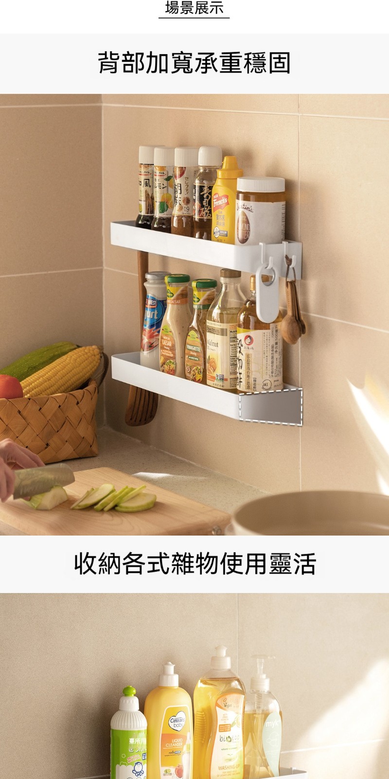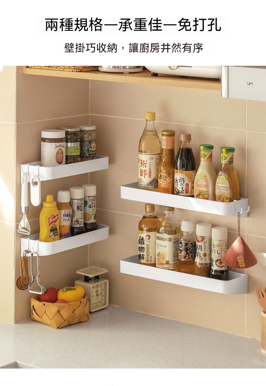 多層免打孔壁掛置物架|廚房浴室通用 ✅ 壁掛式設計,釋放檯面空間 ✅ 免打孔安裝,不傷牆面 ✅ 多層大容量,調味品+瓶罐整齊收納 ✅ 廚房調料+浴室用品,一架搞定